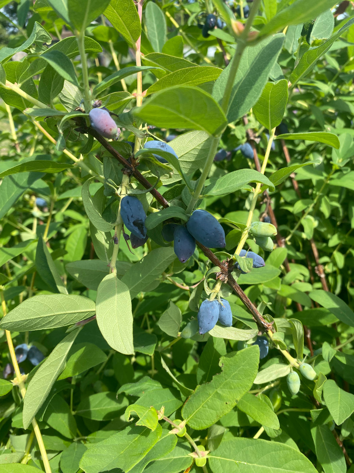 In order to produce fruit they require the pollination of the female Haskap we carry. They aren’t finicky about soil- we’ve seen them thrive in sandy soils, and clay soils as long as they are well drained. If your soil is poorly drained create a mound and plant them on top of that to ensure their roots aren’t saturated. They will fruit somewhat well in part sun, but will produce a lot more in full sun.