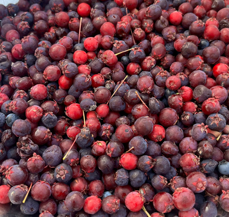Saskatoon berry is best grown in full sun for maximum fruit production. They require well drained soils and do appreciate mulch and compost amendments every year or so. They are very tough and can handle extreme cold climates. Birds do appreciate the fruit so keep this in mind come harvest time. Berries will begin ripening and will first appear pink, then purple, then blue when fully ripe. We haven’t experienced this in our central Ontario location, but some growers do remark on their susceptibility to cedar apple rust which is a fungal disease that can proliferate when grown in proximity to Junipers.